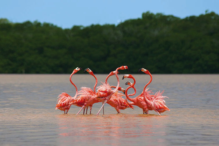 Frente al Golfo de México, entre Campeche y Yucatán, se unen dos grandes áreas protegidas: las reservas de la biosfera Ría Celestún y Los Petenes. Sus humedales sirven de hogar a muchas especies animales, entre ellas el elegante flamenco rosado.